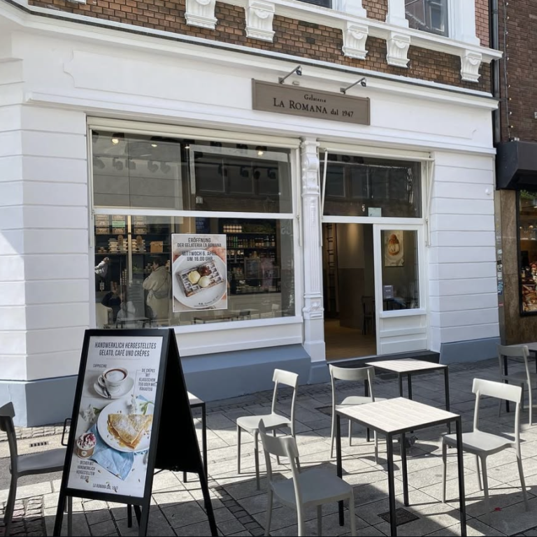 Mit gleich zwei gut erreichbaren Standorten bringt die Gelateria La Romana einzigartige Eiskreationen nach Düsseldorf. Auch, wenn die Preise erst recht hoch erscheinen, sind die Portionen mit kostenloser leckerer Sahne on-top sehr großzügig. Vor allem die Auswahl an vor Ort gemachten, neuen und schmackhaften Eissorten überzeugt auch die kritischsten Gaumen in Düsseldorf. Wer Lust auf etwas anderes hat, kann sich hier auch an einem Eis im weichen Brioche versuchen - es ist definitiv mal einen Versuch wert!